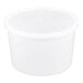 Perfect for soups, stews, sauces, deli salads, and more, this Choice translucent, 64 oz. plastic deli container and lid combo is great for holding a variety of items. Use it for customer purchases or to store food. Made from heavy weight polypropylene, this container is sturdy, great for hot foods, and is also microwavable, allowing your customers the convenience of heating up food without the hassle of switching containers. It's also dishwasher safe, so it can easily be cleaned and reused. The accompanying 6 7/16" lid is made of HDPE (high density polyethylene) and ensures a snug and secure fit to eliminate messes and spills.