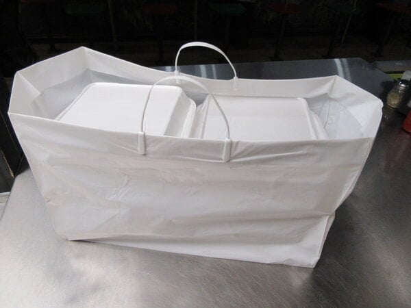 Extremely thin plastic. I got these to put folded clothes in for my clients. In San Diego. But the sides don't hold up at all.