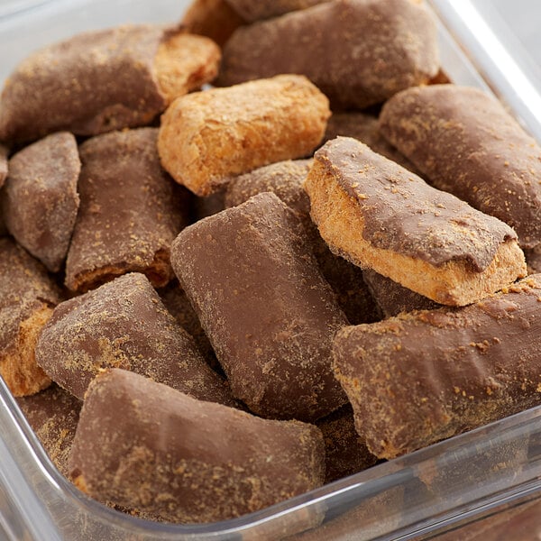 The size of these Butterfinger minis is perfect for using as a topping for ice cream, frozen yogurt, and sundaes with a chocolatey and peanut-buttery flavor theme. They're also great for chopping up and using to top off finished baked goods, such as donuts, cupcakes, and cakes, or folding them into cookie dough for a new cookie on your menu. These Butterfinger minis are an essential ingredient for ice cream shops and bakeries that want to appease their customers with fun topping or dessert options for an ever-evolving menu.