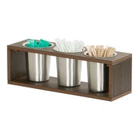 2 ColorsCal-Mil Sydney 12 3/4" x 5" x 4 1/2" Walnut Condiment Organizer with 3 Square Glass Jars