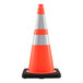 This traffic cone boasts a fluorescent orange color with (1) 4" and (1) 6" reflective collar for a high level of visibility. It will not fade over time for long-lasting durability and excellent color retention. It is equipped with a 10 lb. black base to remain upright and securely in place. This traffic cones meets MUTCD specifications for traffic control devices and is DOT approved.