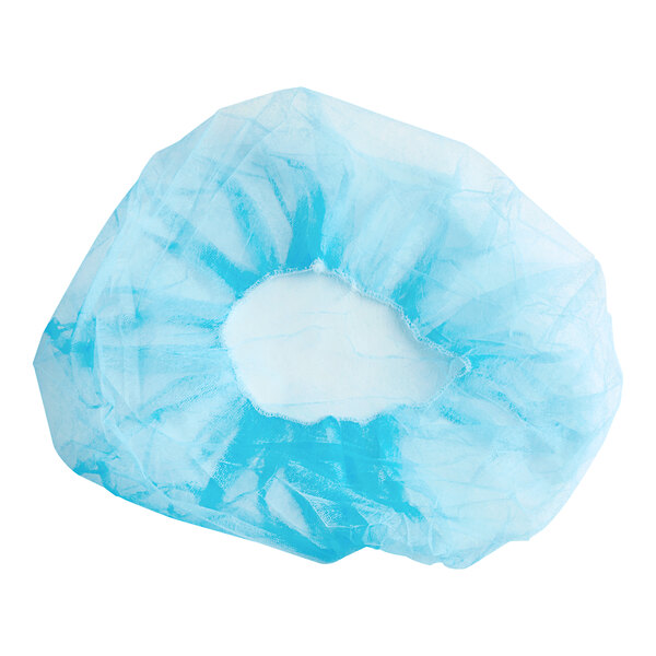 Reduce the possibility of a strand of hair ruining a pristine dish or your reputation by stocking up on this Choice 28" blue polypropylene bouffant cap.