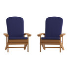 Flash Furniture Charlestown White Faux Wood Adirondack Chair with Blue Cushions - 2/Set