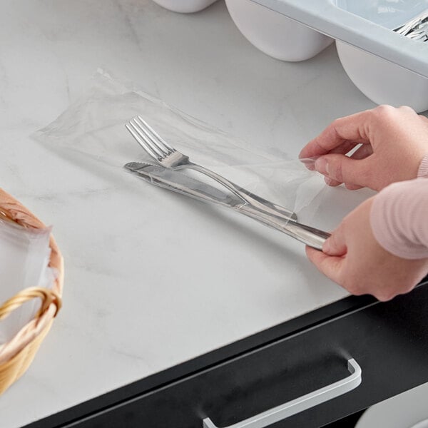 I really like these bags. They have a little flap like a sandwich bag to enclose all the items. They make drop off orders much easier & sanitary. These are much cheaper than buying pre-rolled utensils and much easier than rolling your own silverware.