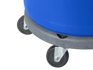 This bin features (5) 3” gray casters and includes a dolly for easy transportation whether it's empty or full.
