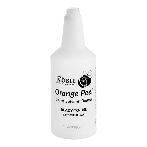 This 32 oz. bottle is already labeled to store Noble Orange Peel citrus solvent cleaner. By having a pre-labeled bottle, you'll remain in compliance with OSHA labeling regulations. Also, your employees will always know what the bottle’s contents are, preventing any confusion during the cleanup process.