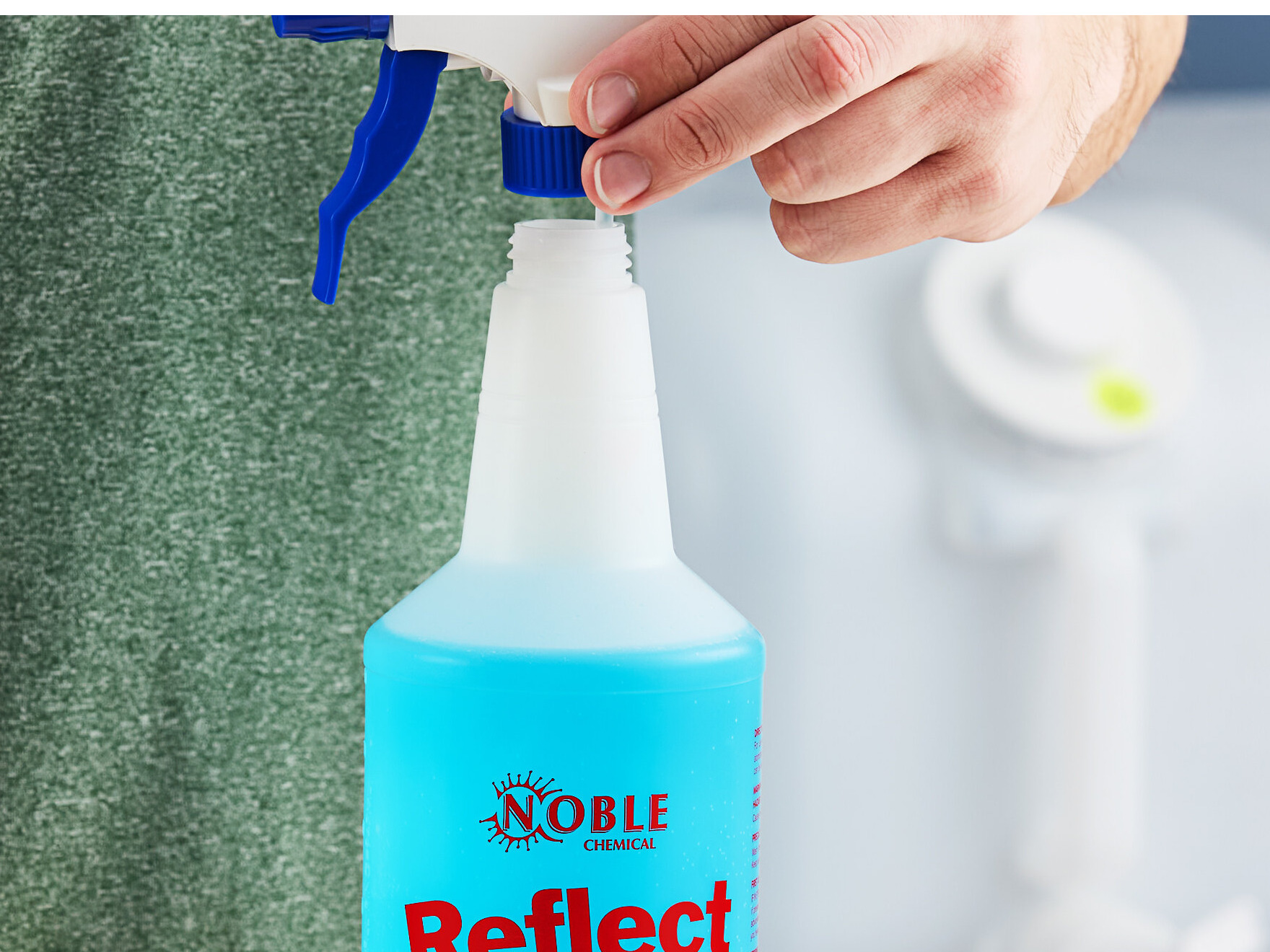 By having this 32 oz. labeled bottle on hand, you’ll be able to fill it with Noble Reflect glass cleaner (sold separately) and use it to keep the windows, mirrors, display cases, and other glass surfaces in your establishment crystal clear. Since this bottle is reusable, you can purchase Noble Reflect glass cleaner in bulk rather than buying multiple bottles of cleaner. Simply refill this bottle when it’s empty with the contents from the larger container, and stop throwing away bottles every few weeks or months. Also, by using this container, you’ll remain in compliance with OSHA chemical labeling regulations, since it is clearly marked.