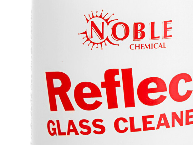 Instructions for the Noble glass cleaner are printed directly on this bottle to ensure it’s always used properly. The bottle’s instructions include directions for use, precautions, and first aid directions.