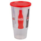 Sweeten your takeout beverage service with this lemonade economy car cup with green lid. Boasting an eye-catching, lemonade design with a green lid, this cup makes all your beverages look even better. It's made of plastic for superior durability and strength, giving it the ability to hold fruit punch, sodas, and ice-cold lemonades. The base of the cup is the perfect size for fitting in most cup holders, while the rolled rim provides comfortable sipping.
