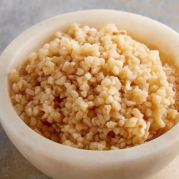 Mincing a full clove of garlic by hand can be tedious and time-consuming. With this already preserved garlic in water, you can shorten your preparation time and therefore provide faster and easier service to your hungry patrons! In addition, this garlic is minced uniformly to ensure even cooking and a completed dish that is packed with real garlic taste. As opposed to chopped garlic, this minced garlic more easily disperses and blends with the other flavors of your recipes. Use this minced garlic in water for chili, specialty meat rubs, marinades, or stir frys. It can even be sauteed, spread on bread crusts, or included in flavorful seasonings and sauces. If you're looking to save time in your busy kitchen, while still offering flavorful menu items, this minced garlic in water is just what you need!