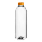 Package and sell your signature juice or beverages with this Captiva Containers 32 oz. Round PET clear bottle with red lid. Made of recyclable PET plastic, this bottle features a round shape that allows you to maximize your storage and display space. Its crystal-clear construction helps showcase your products, and it comes unbranded and unlabeled, allowing you to easily add your own custom label, brand, logo, or nutrition information. Use it to individually bottle fresh-pressed juice, iced coffee, or tea for sale.
