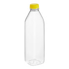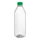 Package and sell your signature juice or beverages with this 32 oz. square PET clear bottle with clear lid. Made of recyclable PET plastic, this bottle features a tall, trendy, square milkman shape that is both functional and attractive. Its crystal-clear construction helps showcase your products, and it comes unbranded and unlabeled, allowing you to easily add your own custom label, brand, logo, or nutrition information. Use it to individually bottle fresh-pressed juice, iced coffee, or tea for sale.
