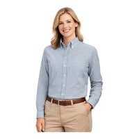 2 OptionsEdwards 5077 Women's Customizable Blue Long Sleeve Wrinkle-Resistant Easy-Care Oxford Dress Shirt with Soil Release - 2XItem number55b50770012xl