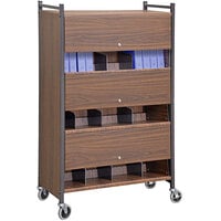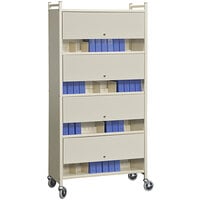 Mobilize binders of all sizes throughout your establishment with this Omnimed Versa light gray 4-shelf cabinet style cabinet rack 262140-LG. With the shelves resting at a 10 degree angle, they are perfect for storing side open binders and books. Since there is a 2" indentation on the back of the shelves, they can alternatively be used to safely house top open binders, keeping contents level and secure atop the shelf. Since the unit is cabinet style, the sides are entirely enclosed to keep items from falling out. Each shelf includes (3) 18 gauge dividers to hold books and binders vertically.