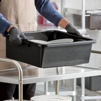 2 QuantitiesTableCraft 21" x 17" x 7" Black Heavy-Duty Polyethylene Bus Tub / Tote Box 1557B - 6/Case