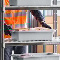 A plastic storage box provides you with storage capacity and the flexibility to transport items around your business or to an offsite location. Pack up dinnerware, non-refrigerated foods, and serving utensils for catered events, or use these boxes to maximize storage space in your business. Every tote box comes with molded handles or a curved upper edge that makes it easier to carry. We also carry covers that will keep your items from spilling out during travel.