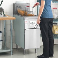 A commercial gas deep fryer is perfect for any high-volume diner, cafeteria, or quick service restaurant. Floor fryers are designed for more heavy-duty use than smaller countertop models, allowing you to continuously prepare onion rings, french fries, chicken wings, and other fried foods. Many options also have multiple fry pots, allowing you to simultaneously cook multiple foods at different temperatures without flavor transfer.