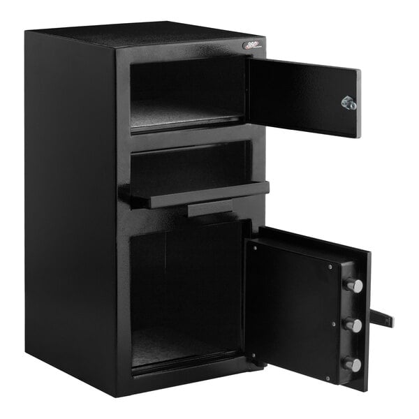 This safe features a main locker that is perfect for short-term storage of cash, change, and checks, while its independent top locker is great for long-term storage of cash, checks, and sensitive documents. Plus, this safe features a tamper-resistant one-way deposit drawer with anti-fishing baffles that make it impossible to fish out deposits of any kind. For exceptional door security, the safe features 3 pry-resistant steel deadbolts.