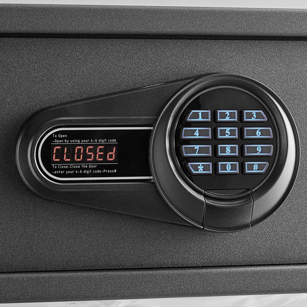 Thanks to its compact size, it is perfect for small spaces in hotel rooms. For the ultimate ease of use, the safe features an integrated keypad using 4-6 digit codes and displays directions. The safe includes an override key and 2 backup keys to help prevent accidental lockouts.