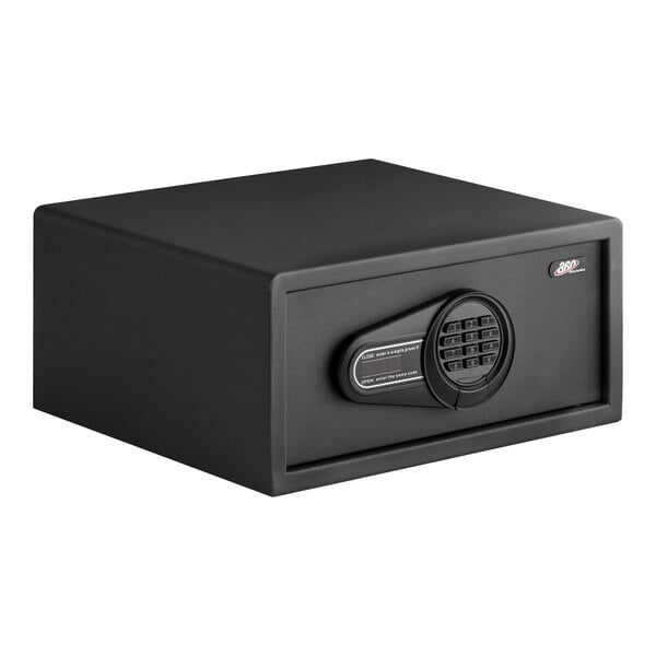 Ensure that your patrons' belongings are protected at all times with this 360 Office Furniture 16 1/2" x 14 1/2" x 7 7/8" black steel hotel safe with electronic keypad lock.