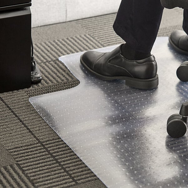 This 360 Office Furniture 45" x 53" lipped clear office chair mat for carpets is the perfect addition to any office setting. Featuring an extended lip cutout, this mat can easily fit under desks for added floor protection. Keep your carpets looking neat, clean, and professional with this chair mat from 360 Office Furniture!