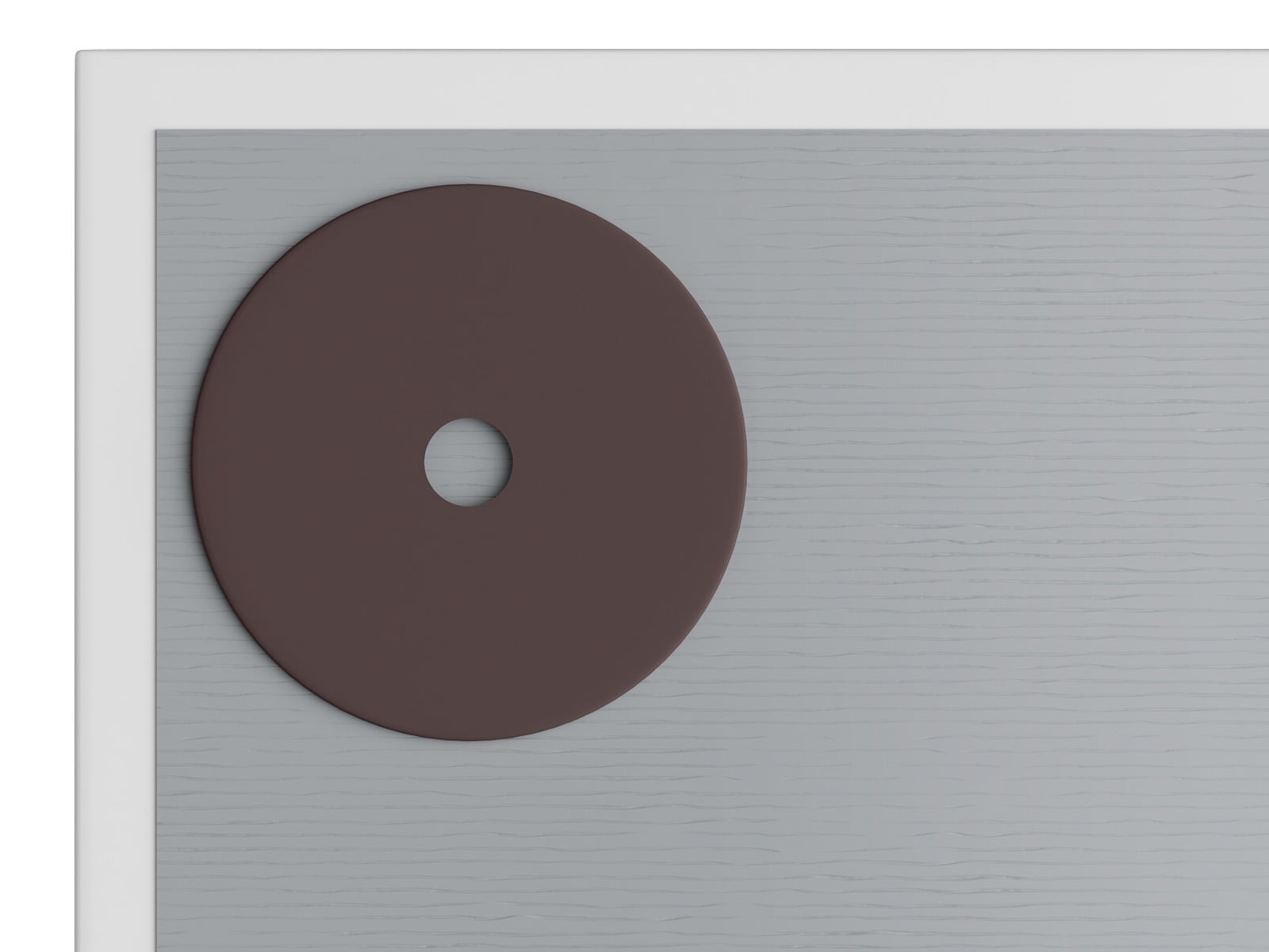 - Mounting brackets with a modern silver cap finish are offered at each corner
