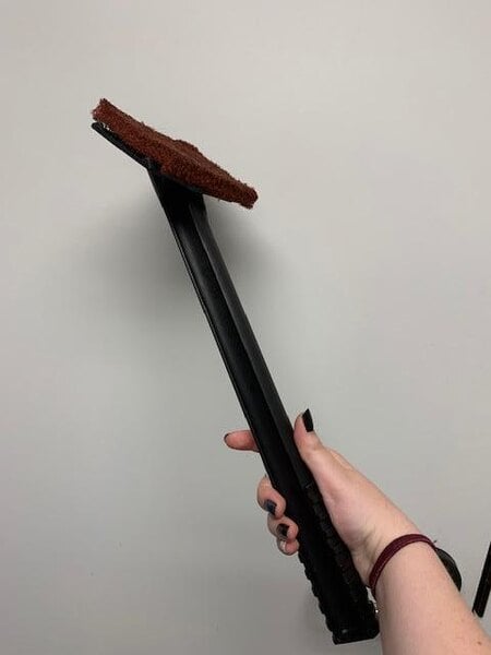 Whether you're interested in anything from general purpose cleaning to heavy-duty scouring, this 3M 405-R Scotch-Brite™ 16" multi-purpose pad holder is guaranteed to be an excellent accessory to Scotch-Brite™ cleaning pads! Made of durable black plastic, this pad holder tightly secures various Scotch-Brite™ non-woven cleaning pads and features a 16" long handle to give you the best leverage possible while also maintaining a safe distance from hot or otherwise hazardous surfaces. It is also part of the renowned Scotch-Brite™ Quick Clean griddle cleaning system!