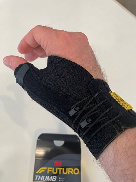 Great thumb stabilizer, it works like it’s supposed to. I wear xl gloves and this fits with plenty of extra adjustments left. It helps keep your thumb straight but doesn’t affect the usability much. Works on both hands and the stabilizing rods are removable. It’s been helping the pain in my thumb greatly.