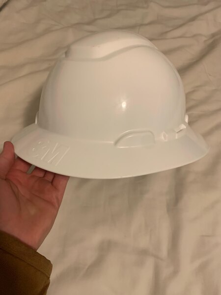 "Great hard hat ratchet is easily adjustable and the white color works perfectly with my uniform. Material is easy to keep clean Heavy duty snd easy to assemble highly recommend."