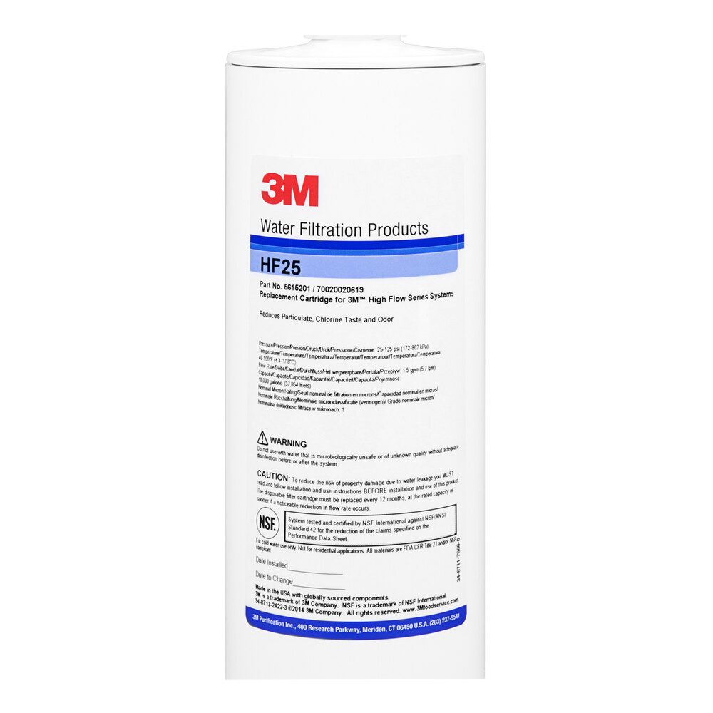 Consistent, high quality water is imperative to any commercial foodservice operation. Designed for your existing water filtration system, this 3M Water Filtration Products HF25 replacement cartridge is ideal for reducing sediment and chlorine taste and odor from incoming water. Easy to change-out and able to accommodate flow rates up to 1.5 GPM, this cartridge is great for use in your cold beverage dispensers or ice machines!