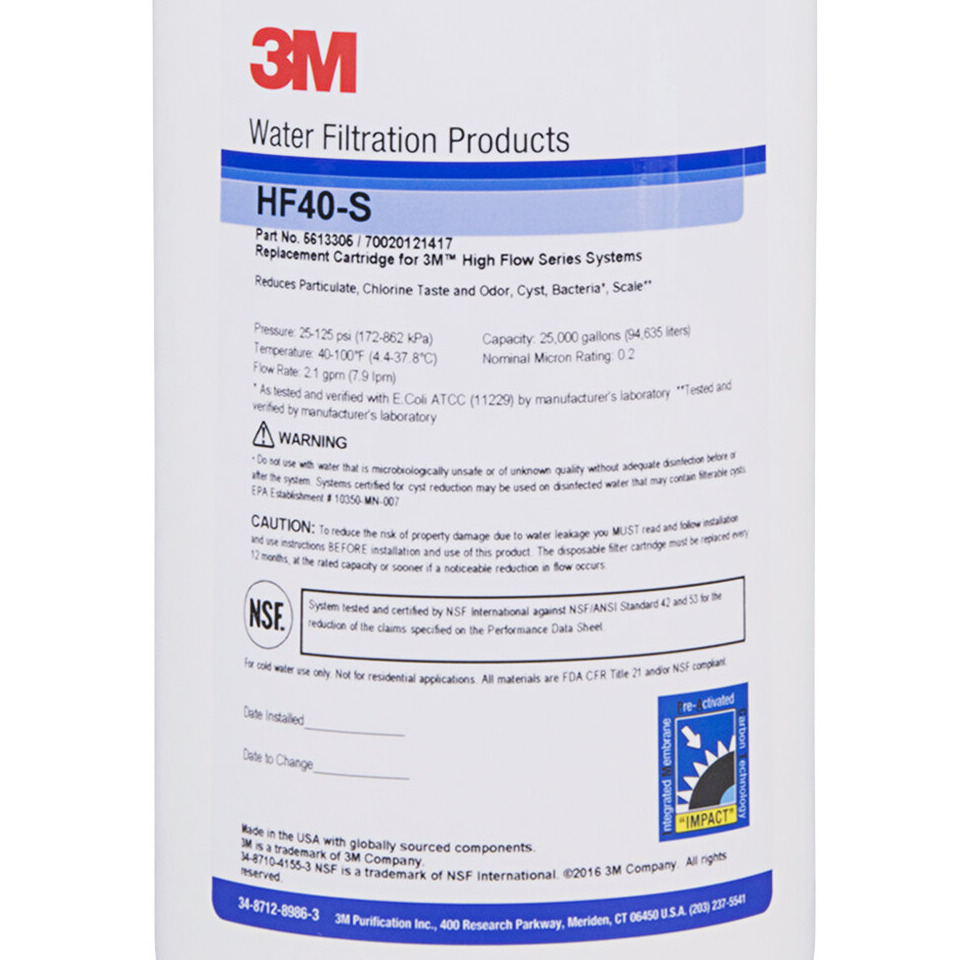 Replace the used filter cartridge in your compatible filtration system with this 3M Water Filtration Products HF40-S cartridge.