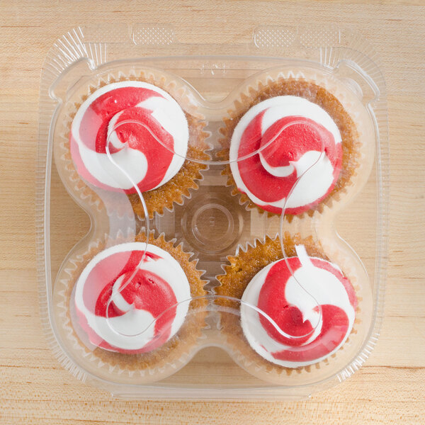 Protect the frosting and decorations on your cupcakes with the high dome design of this Inno-Pak 4 compartment hinged cupcake container.