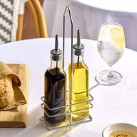 Our oil and vinegar cruets make it easy for your customers and employees to dispense condiments on top of salads and entrees. Made of glass or stainless steel, these cruets are attractive enough to be used in your dining rooms and to set out on tables or in condiment caddies. Some cruets feature a water bottle design with a wire bail lid for rustic appeal, while others include stainless steel pourers on the top for easy dispensing.