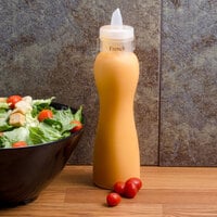 A restaurant dressing bottle can also be helpful for holding different types of dressing at salad bars or buffet counters. Choose from various colored lids and different sizes to make it easy for wait staff to color code syrup, honey, and dressings as well as accommodate your volume of sales. Because these dressing bottles come with easy-pour spouts, customers can dispense just the right amount of toppings they prefer, reducing food waste and saving you money.