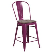 4 ColorsFlash Furniture ET-3534-24-PUR-WD-GG 24" Purple Metal Counter Height Stool with Vertical Slat Back and Wood Seat