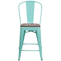 4 ColorsFlash Furniture ET-3534-24-MINT-WD-GG 24" Mint Green Metal Counter Height Stool with Vertical Slat Back and Wood Seat