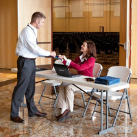 Made by a manufacturer known for their high-quality portable furniture, Lifetime banquet tables make setup and cleanup easy. Perfect for conference centers, offices, and other meeting spaces, Lifetime seminar tables allow you to prominently display pamphlets and flyers without taking up too much of your space. Plus, they are available in different sizes, so you can choose the option that best fits in your meeting room or conference hall.