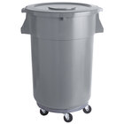Made of a high-quality resin, this material is molded for a seamless construction and bends like rubber to prevent cracking. Its round design and smooth surface make it easy to wipe clean. For convenient storage, this bin also nests with other bins when it's not in use to help save valuable storage space. The secure lid protects against airborne and other contaminants. For additional convenience, this bin also comes with a dolly that can transport it wherever you need. Built to withstand daily use, you can be sure this durable round ingredient storage bin with lid will work perfectly in your busy kitchen.