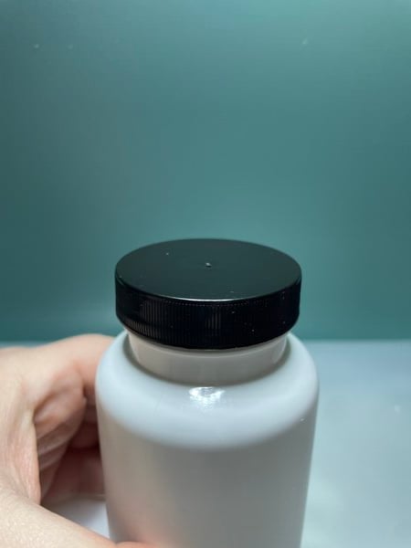 I bought this black plastic cap with foam liner to close a medication bottle I bought. It closes well and easily. It’s secure and won’t open. Its edge is ribbed so it’s easy to grip and turn.