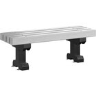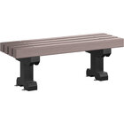 Upgrade your outdoor seating with this MasonWays 48" x 17" x 17" brown plastic backless dura-bench with black legs. This outdoor bench is made of durable plastic that is designed to withstand long-term exposure to outdoor conditions. Its backless design provides a sleek look as well as the practical ability for guests to sit facing either direction, providing versatility in use. Its portable or in ground mounting ability also allows for freedom of placement and easy relocation.