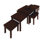 Choose a reliable display with this 48" x 48" x 35 7/8" cocoa maple 8-piece display table set. This set features seven pieces of varying sizes. The largest table is a generous 48" x 48" and can sport a 12" x 18" topper. The variety in table sizes create an appealing depth for your display. It is perfect for displaying products in retail stores, bakeries, and grocery stores.