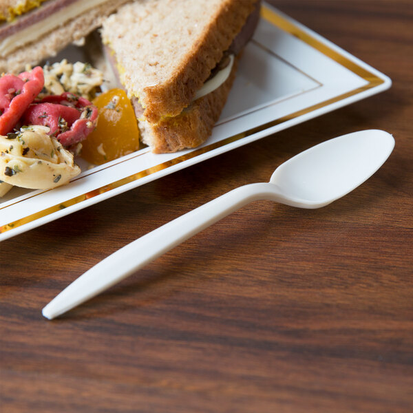 Perfect for cafes, delis, bistros, or take out buffets, this teaspoon provides your patrons with a sturdy utensil for enjoying food. Plus, it's environmentally friendly, using up to 70% less plastic than other medium flatware. For an economical, eco-friendly, and practical cutlery solution, stock up on these disposable ivory colored teaspoons.