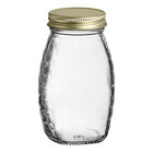 Package and distribute honey, condiments, and sauces with ease using this 5.5 oz. (8 oz. honey weight) classic queenline glass honey jar with plastisol-lined white metal lid. This jar features a traditional queenline shape with ribbed edges, making it easy to hold and transport. It can hold up to 8 oz. of honey or 5.5 fl. oz. of other liquids. The crystal-clear glass construction allows for optimal visibility of the contents inside to create an enticing display. This jar also has space to add your own label of nutritional information or business logo.