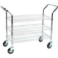 Our carts are made from durable chrome plated steel, which offers a light weight and sleek functionality. Additionally, our stock and order picking carts have full swivel wheels that offer a full range of motion and allow you to easily navigate through tight corners and crowded storage areas, even with a full load. Most of our carts are also NSF Listed, so they are simple to clean and maintain.