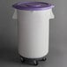- Item #: 176ibm44wpBaker's Mark Allergen-Free 44 Gallon / 700 Cup White Round Mobile Ingredient Storage Bin with Purple Snap-On Lid and Gray Dolly