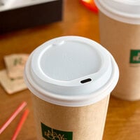 1000CaseNew Roots Translucent Compostable Paper Hot Cup Lid for 10-24 oz. Standard Cups and 8 oz. Squat Cups - 1,000/Case
