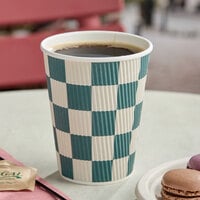 500CaseChoice 12 oz. Double Wall Ripple Navy Checkered Paper Hot Cup - 500/Case