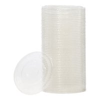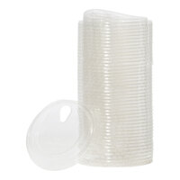 Operators of concession stands, convenience stores, take-out restaurants, and cafés will all appreciate having these lids for plastic cups in stock. Not only do they prevent spills when employees are handling them, but they also allow customers to enjoy their beverages without messing up their cars, clothing, or other personal belongings with spilled, sticky liquids. These plastic cup lids come in a range of different size options, so you can use them with small cups that hold sides of dressing or large drinking cups filled with iced tea.