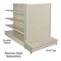 Gondola shelving is ideal for creating grocery or retail merchandising displays. These shelves have a heavy gauge pegboard so they're strong and durable. They are also simple to assemble, making them easy to set up in your establishment. Gondola shelving units have a wire grid design with hooks to configure many different displays.