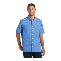 2 OptionsPort Authority W961 Unisex Customizable True Royal / White Mini Plaid Short Sleeve Moisture Wicking UV Daybreak Shirt - UPF Rating of 30Item number39b2280351